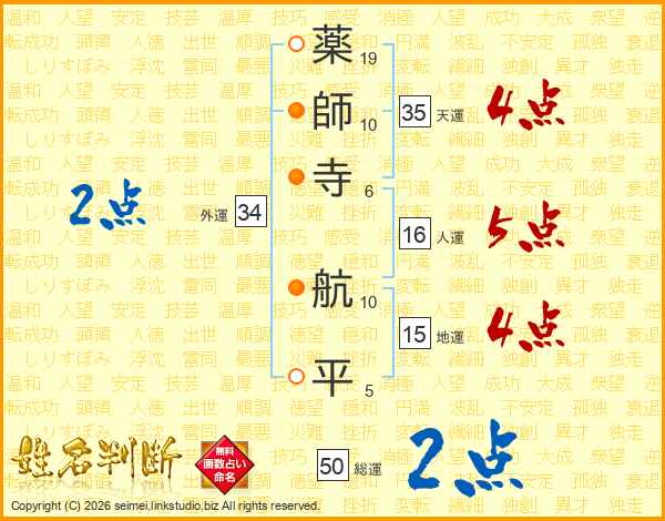 薬師寺航平さんの天運は35画の4点!