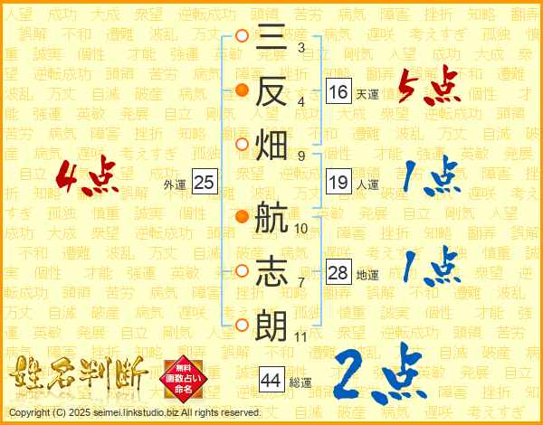 三(3画)反(4画)畑(9画) 航(10画)志(7画)朗(11画)