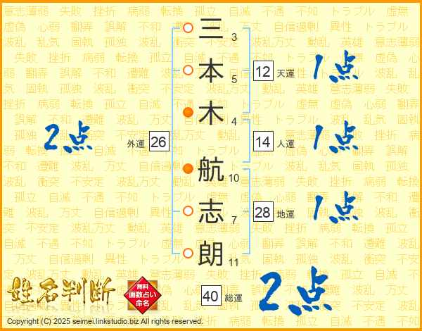 三本木航志朗さんの総運は40画の2点!