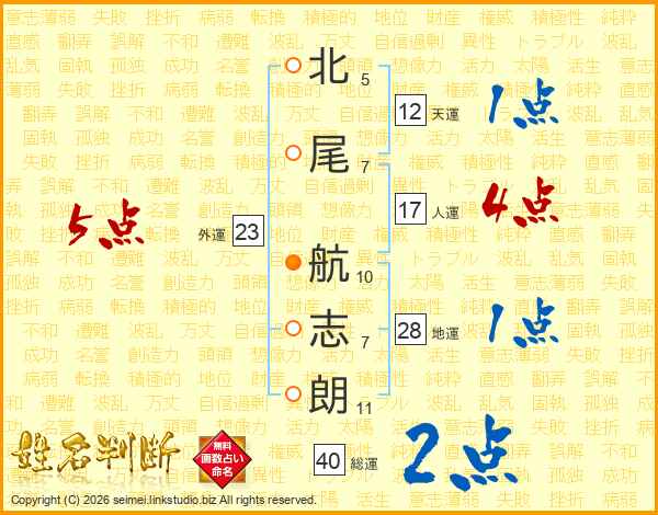 北尾航志朗さんの人運は17画の4点!