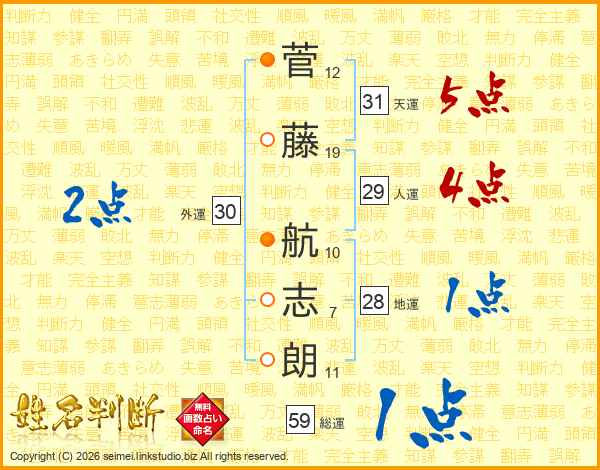 菅藤航志朗さんの天運は31画の5点!