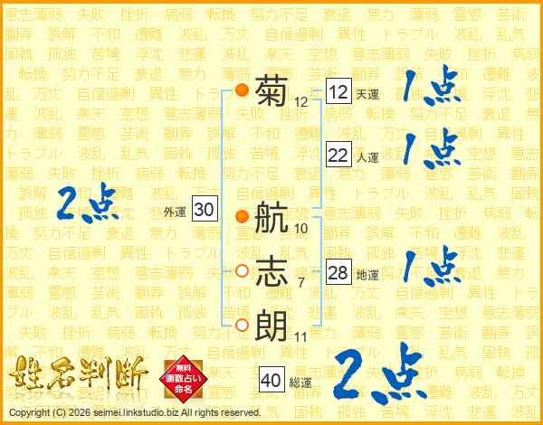 菊航志朗さんの総運は40画の2点!