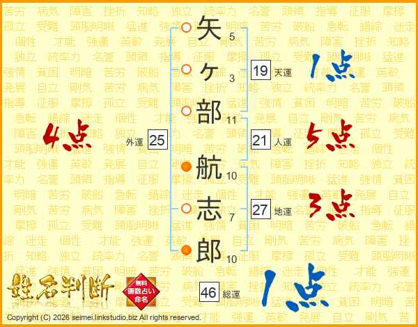 矢ヶ部航志郎さんの人運は21画の5点!