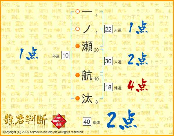 一ノ瀬航汰さんの総運は40画の2点!