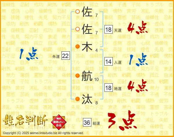 佐佐木航汰さんの総運は36画の3点!