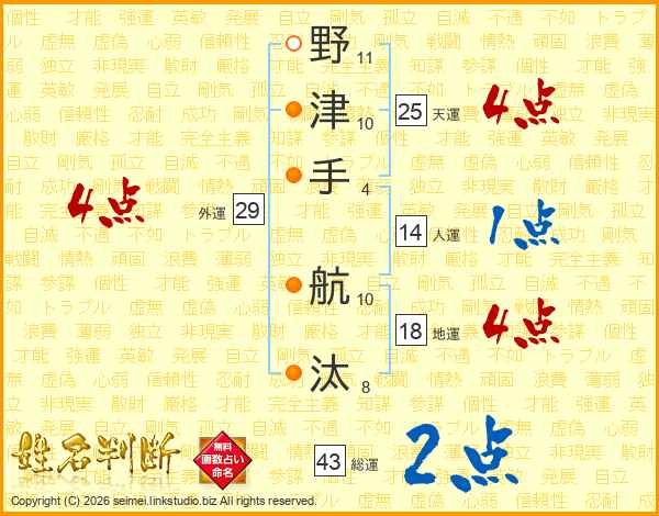 野津手航汰さんの天運は25画の4点!