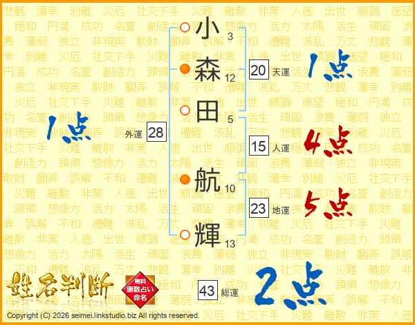 小森田航輝さんの人運は15画の4点!