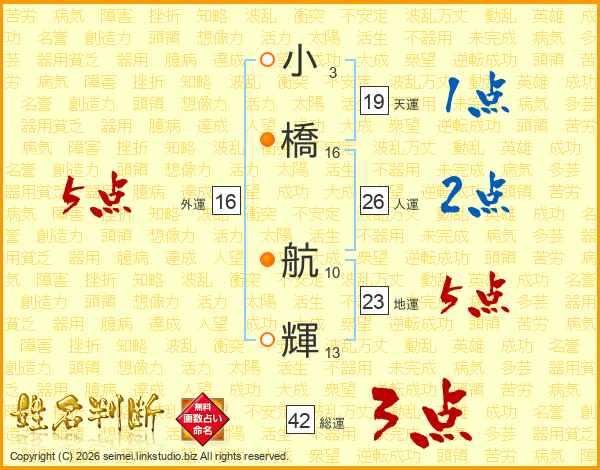 小橋航輝さんの人運は26画の2点!