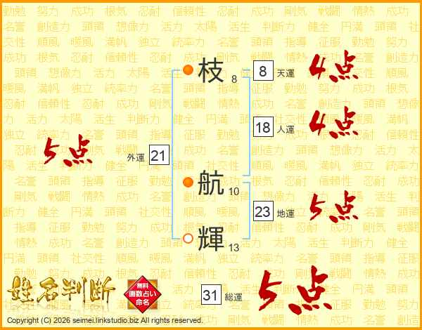 枝航輝さんの総運は31画の5点!