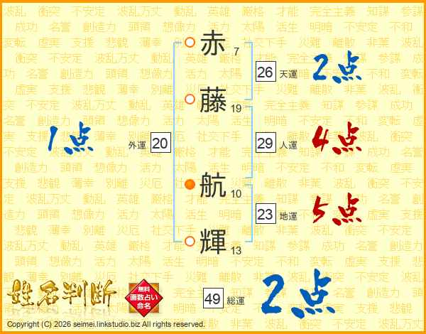 赤藤航輝さんの天運は26画の2点!
