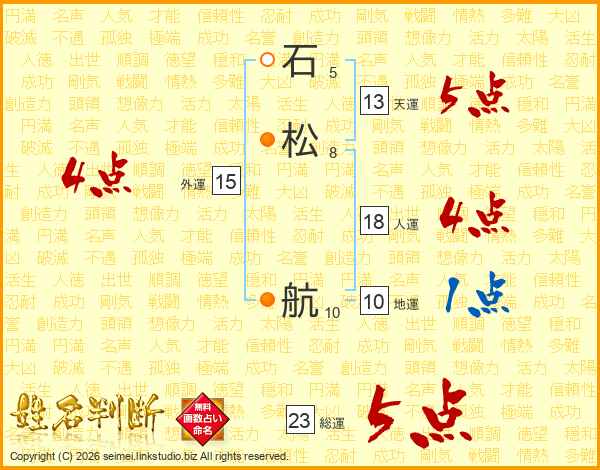 石松航さんの総運は23画の5点!