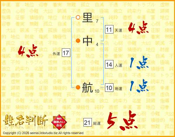 里中航さんの天運は11画の4点!
