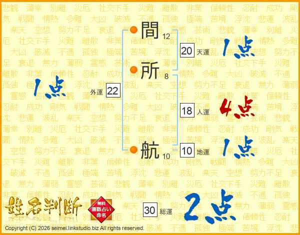 間(12画)所(8画) 航(10画)