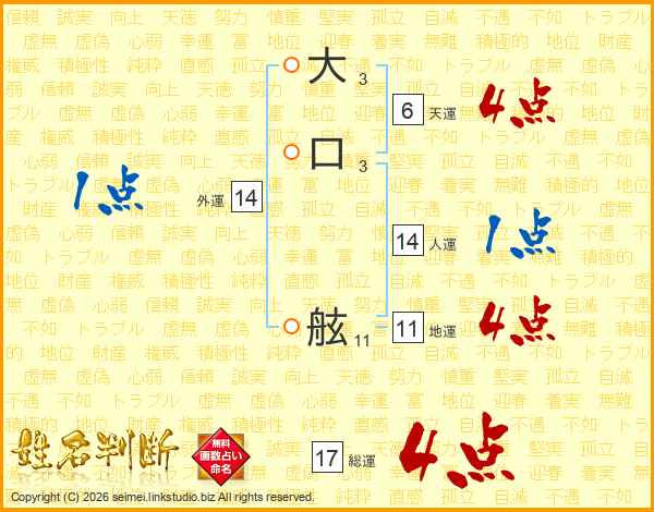 大口舷さんの総運は17画の4点!