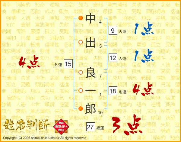 中出良一郎さんの総運は27画の3点!