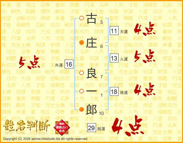 古庄良一郎さんの総運は29画の4点!