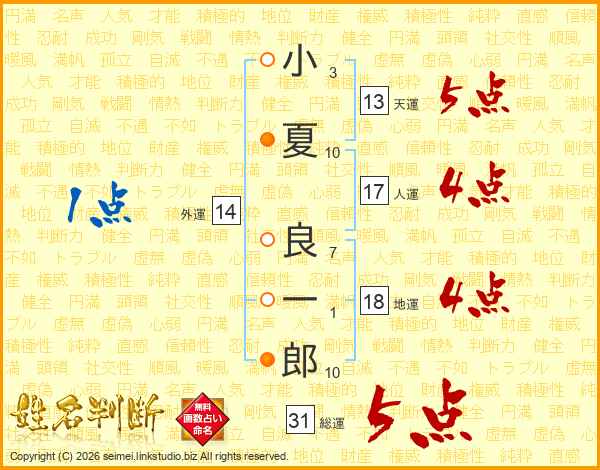 小夏良一郎さんの総運は31画の5点!