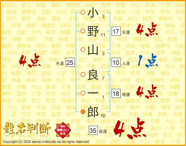 小野山良一郎さんの総運は35画の4点!