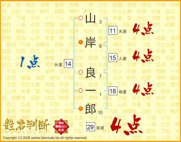 山岸良一郎さんの総運は29画の4点!