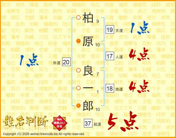 柏(9画)原(10画) 良(7画)一(1画)郎(10画)