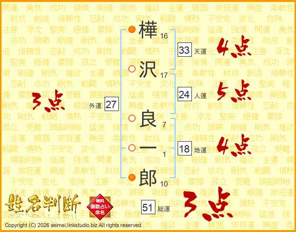 樺沢良一郎さんの総運は51画の3点!