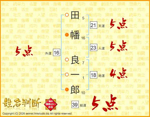 田幡良一郎さんの総運は39画の5点!