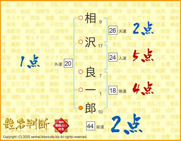 相沢良一郎さんの総運は44画の2点!