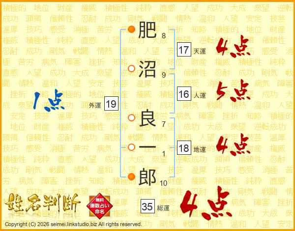 肥沼良一郎さんの総運は35画の4点!