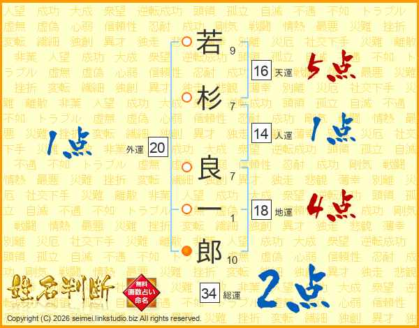 若杉良一郎さんの総運は34画の2点!