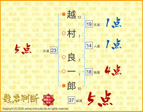 越村良一郎さんの総運は37画の5点!