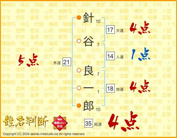 針谷良一郎さんの総運は35画の4点!