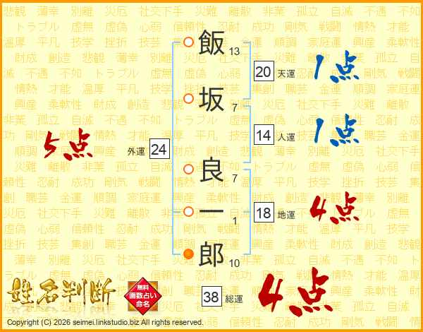 飯坂良一郎さんの総運は38画の4点!
