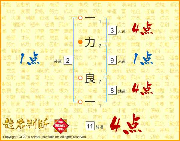 一力良一さんの総運は11画の4点!