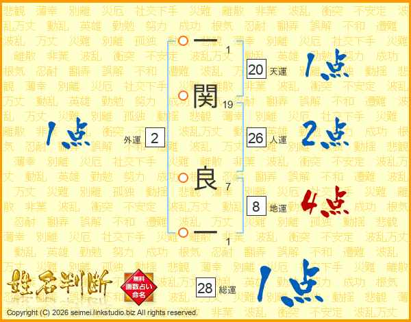 一関良一さんの人運は26画の2点!