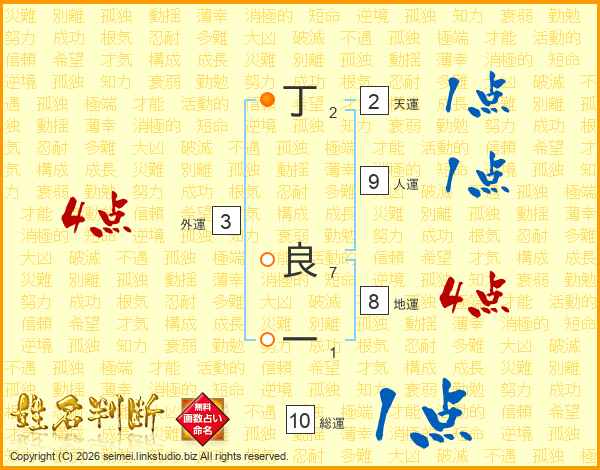 丁良一さんの総運は10画の1点!