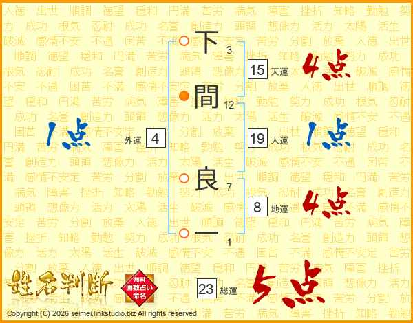 下間良一さんの総運は23画の5点!