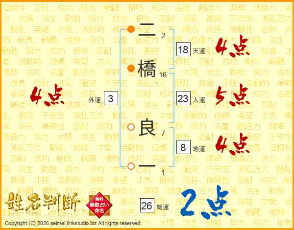 二橋良一さんの人運は23画の5点!