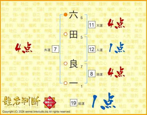 六田良一さんの総運は19画の1点!