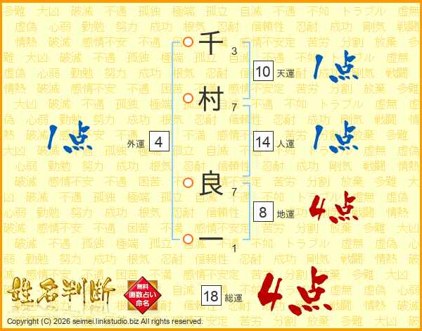 千村良一さんの総運は18画の4点!