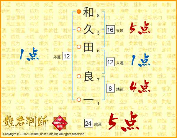 和久田良一さんの総運は24画の5点!