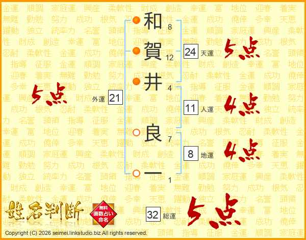 和賀井良一さんの天運は24画の5点!