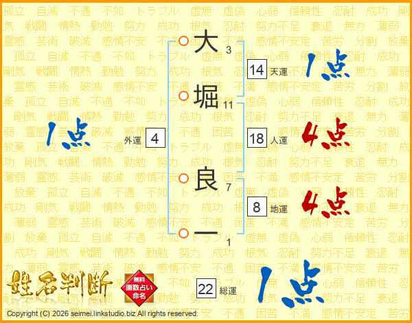大堀良一さんの天運は14画の1点!