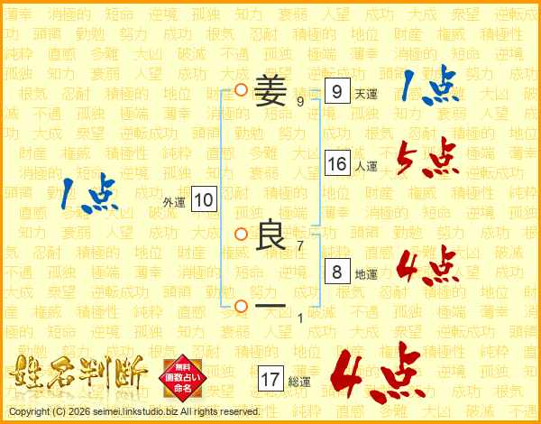 姜良一さんの総運は17画の4点!