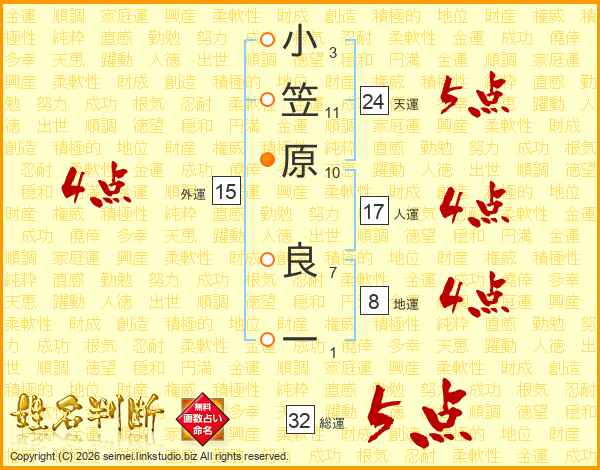 小笠原良一さんの総運は32画の5点!