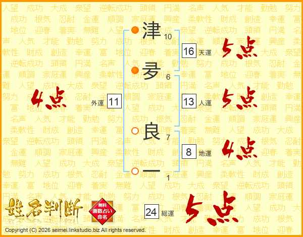 津夛良一さんの総運は24画の5点!