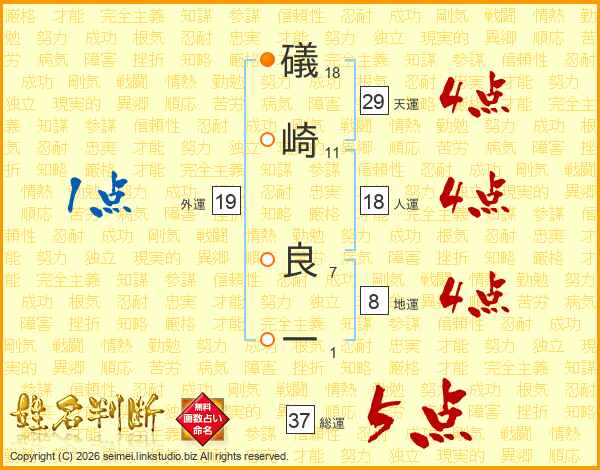 礒崎良一さんの総運は37画の5点!