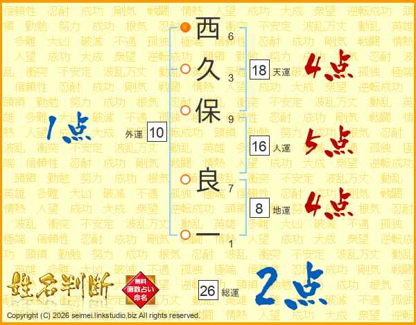 西久保良一さんの総運は26画の2点!