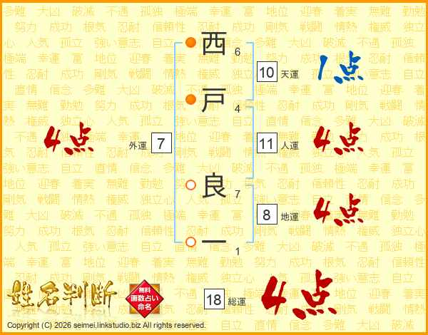 西戸良一さんの総運は18画の4点!