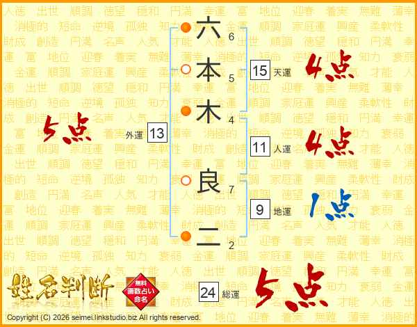 六(6画)本(5画)木(4画) 良(7画)二(2画)