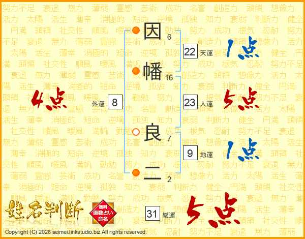 因幡良二さんの総運は31画の5点!